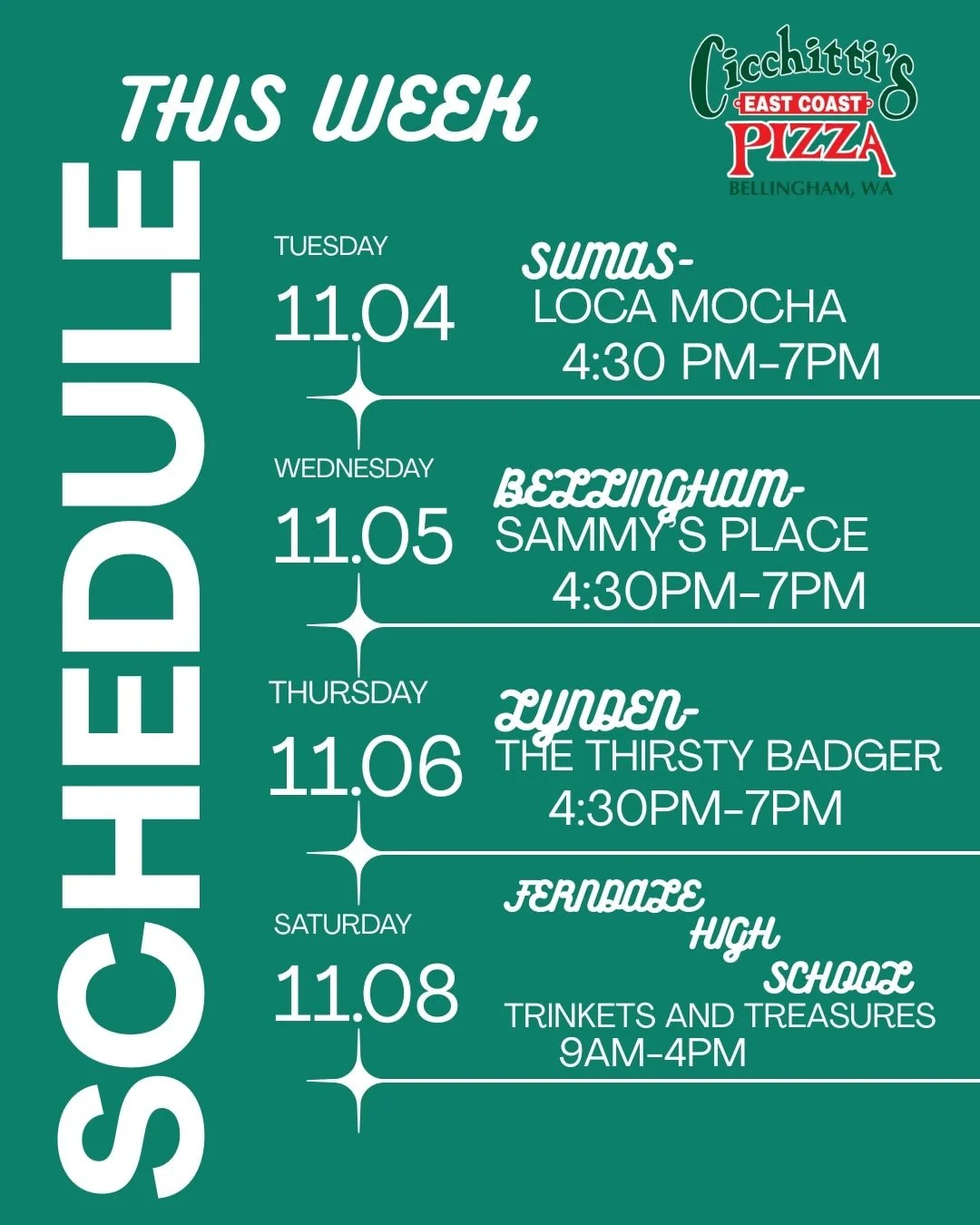 We are a family owned/operated food truck that travels around Whatcom County to select locations on a rotating calendar.